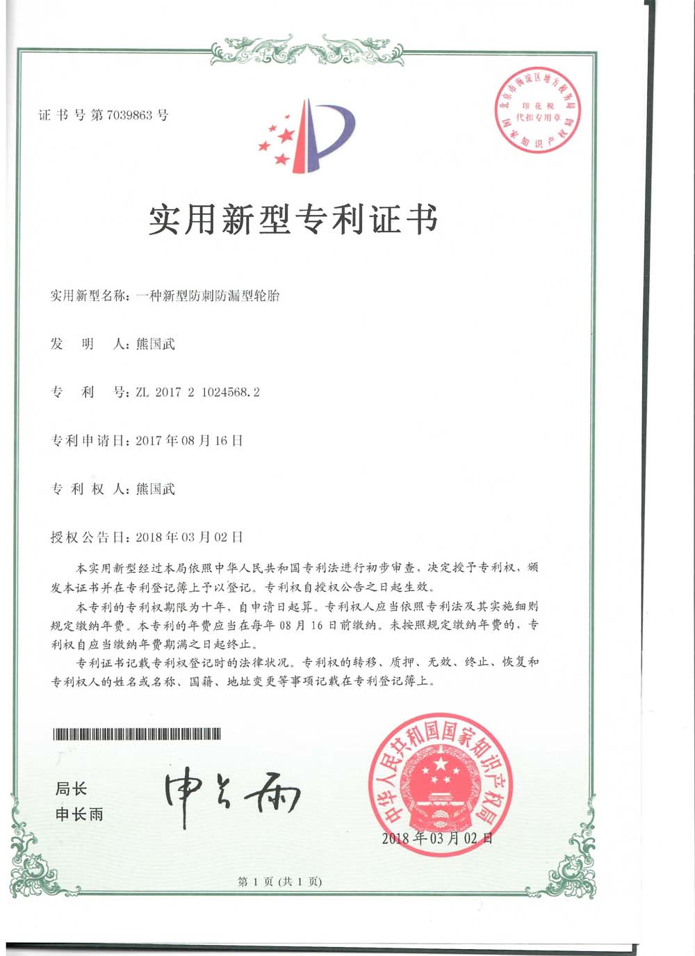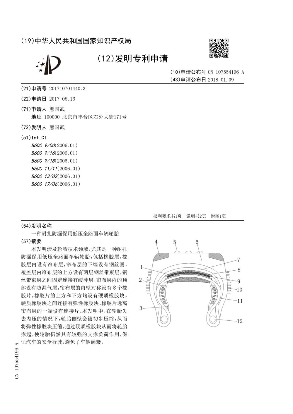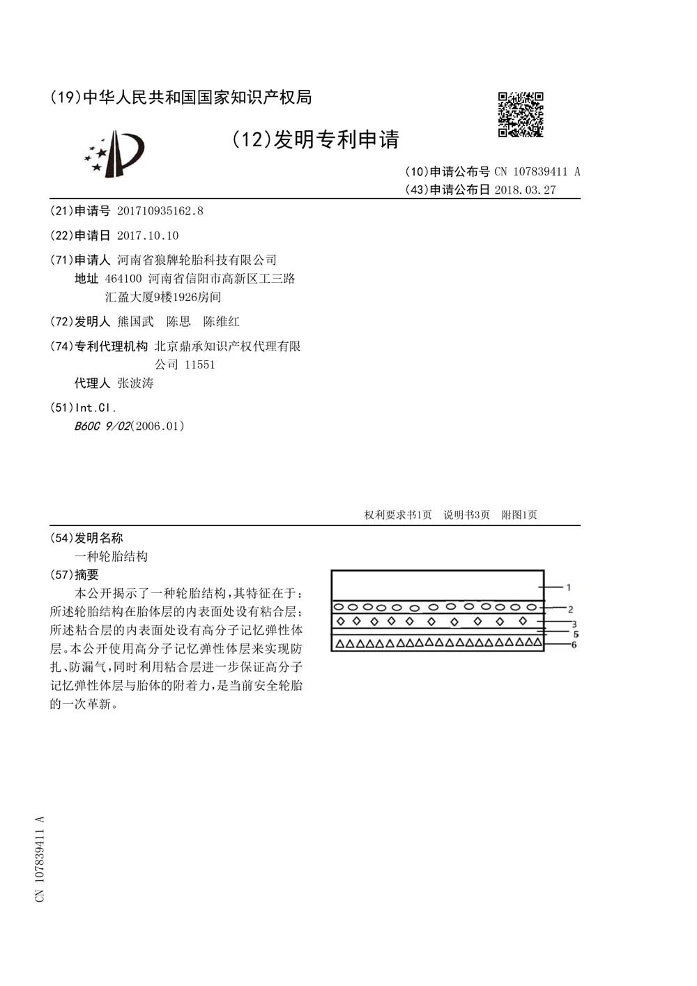 中橡狼牌輪胎發(fā)明專利、實(shí)用新型專利及外觀設(shè)計專利