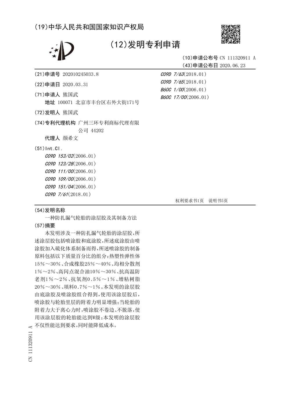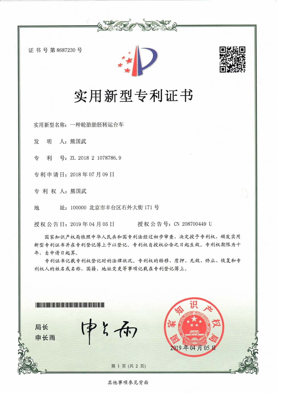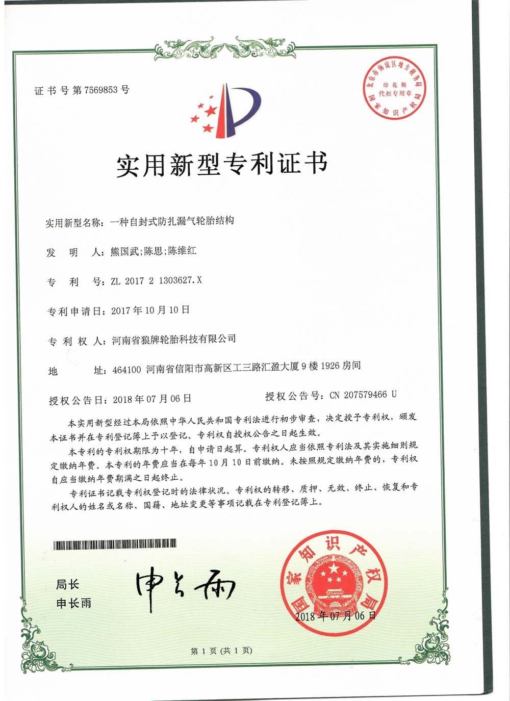 中橡狼牌輪胎發(fā)明專利、實(shí)用新型專利及外觀設(shè)計專利