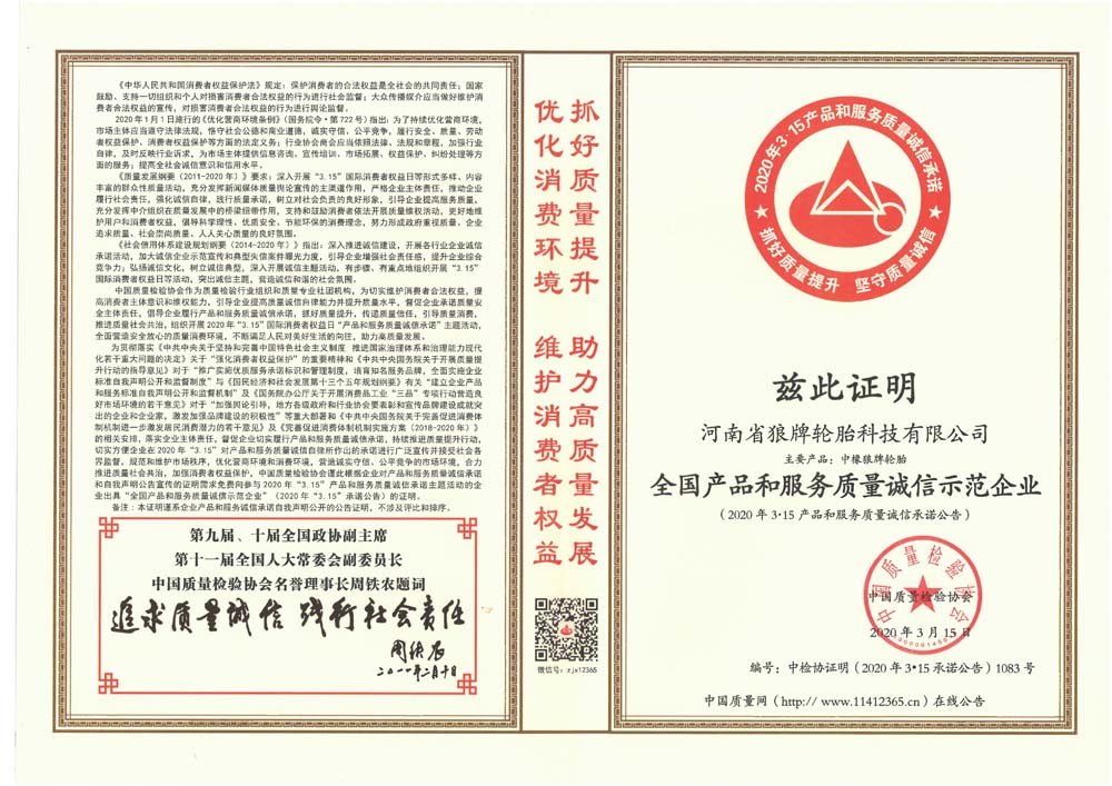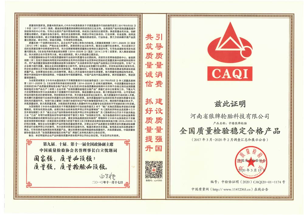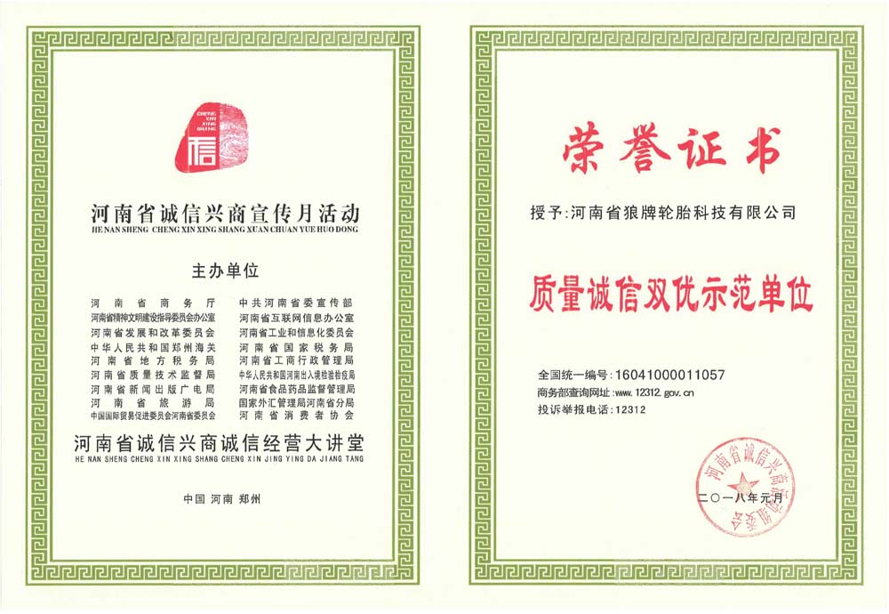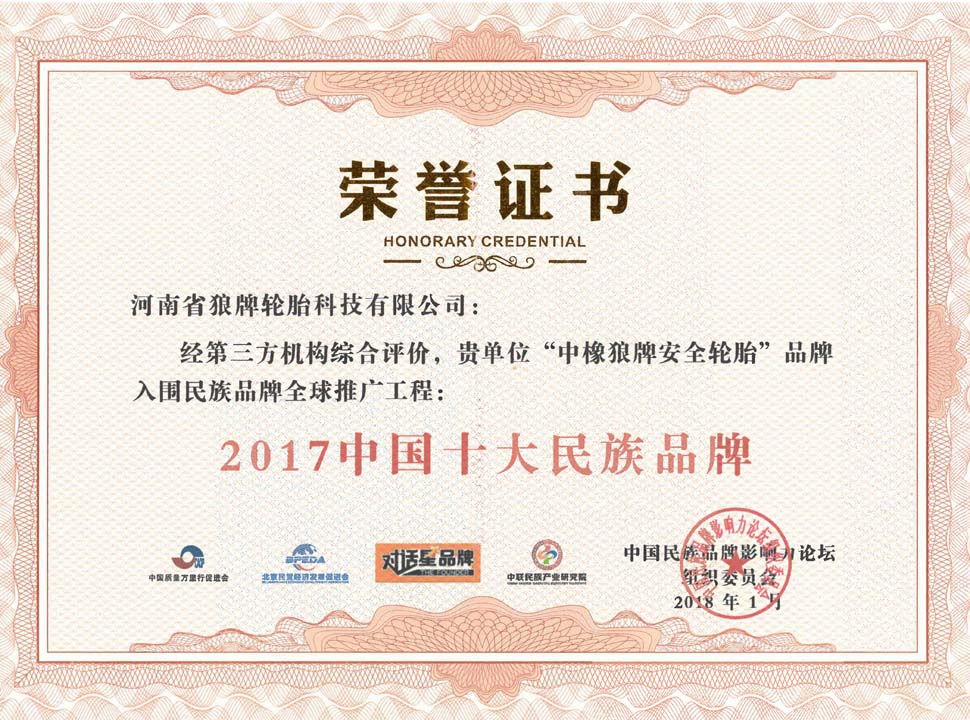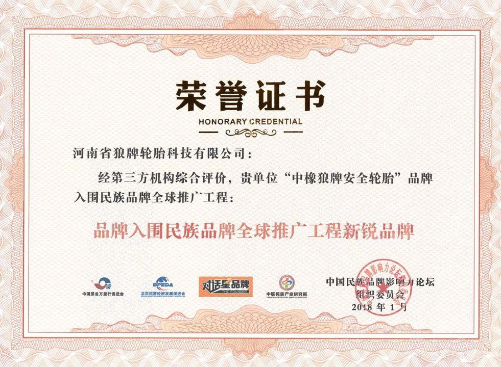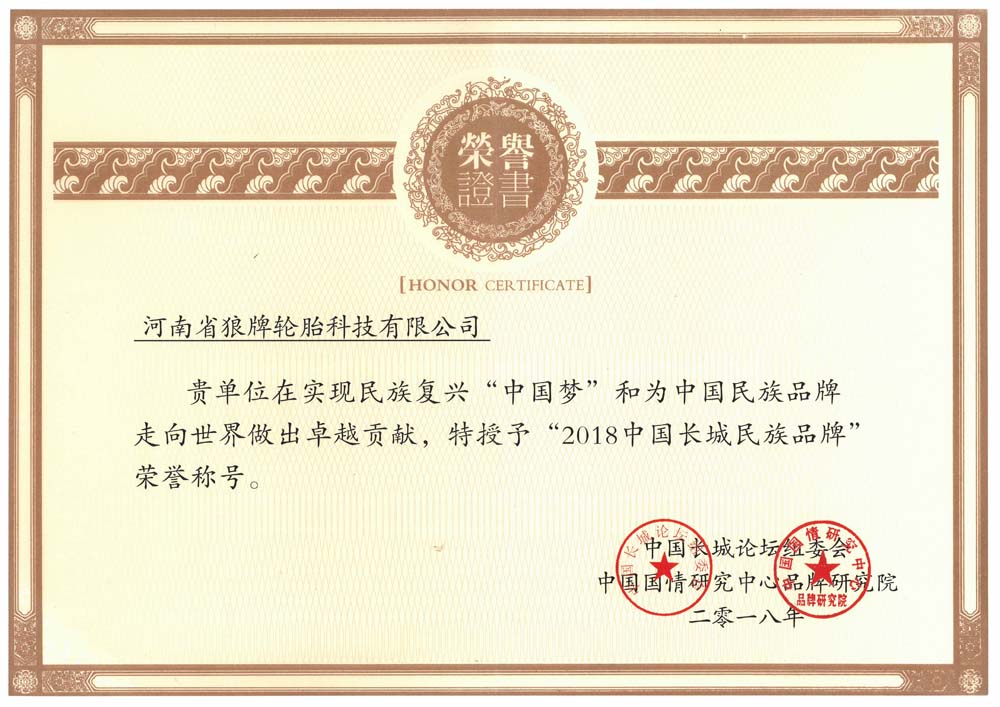 中橡狼牌輪胎品牌榮譽(yù)